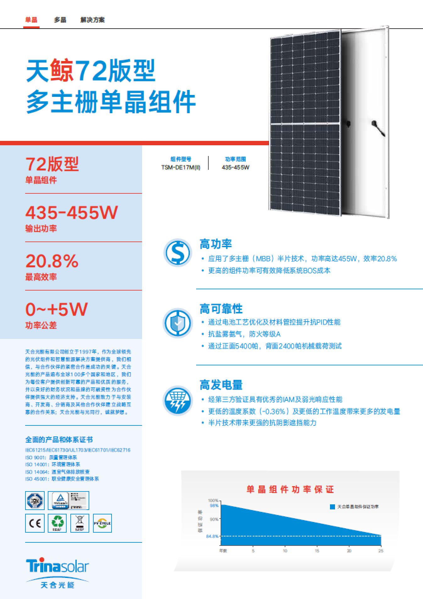首頁 >> 绿色商城 >>光伏电池板 >> 天鲸72版型多主栅单晶组件(435-455W)