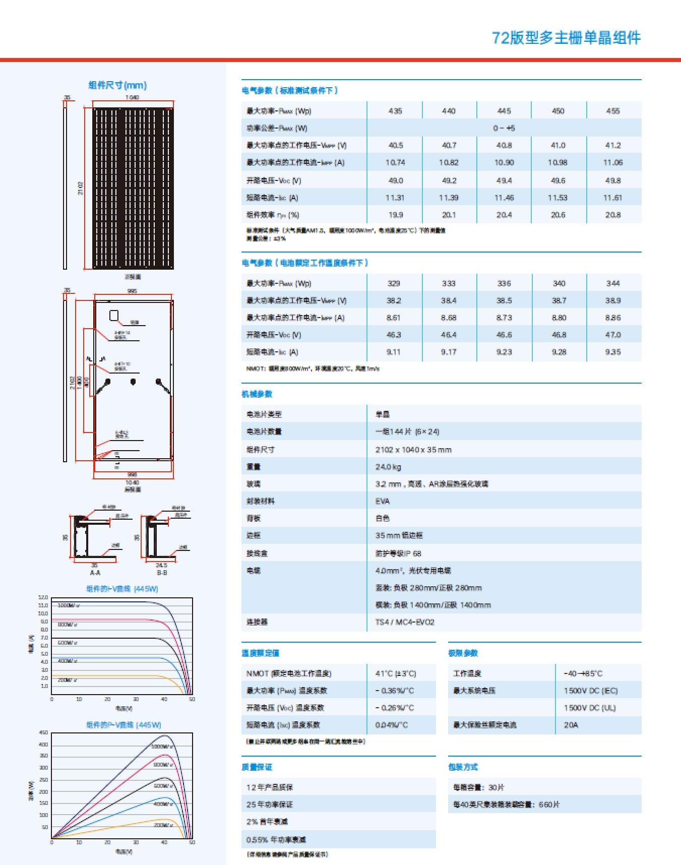天鲸72版型多主栅单晶组件(435-455W)